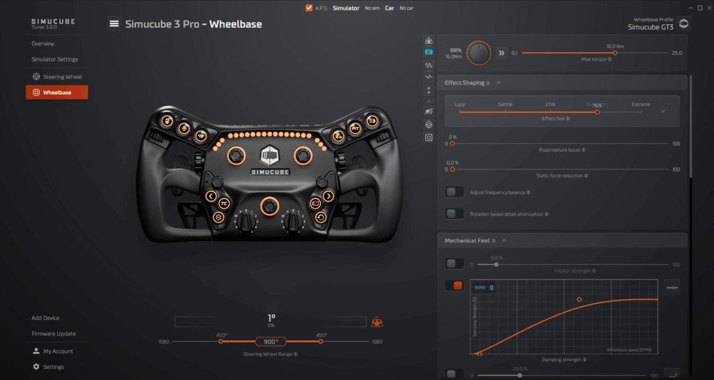 - ストレスフリーな設定継承:Simucubeエコシステム内であれば、ステアリングを付け替えてもボタンの割り当て位置を高い精度で認識・保持してくれるため、車ごとにステアリングを変える際のストレスがありません。